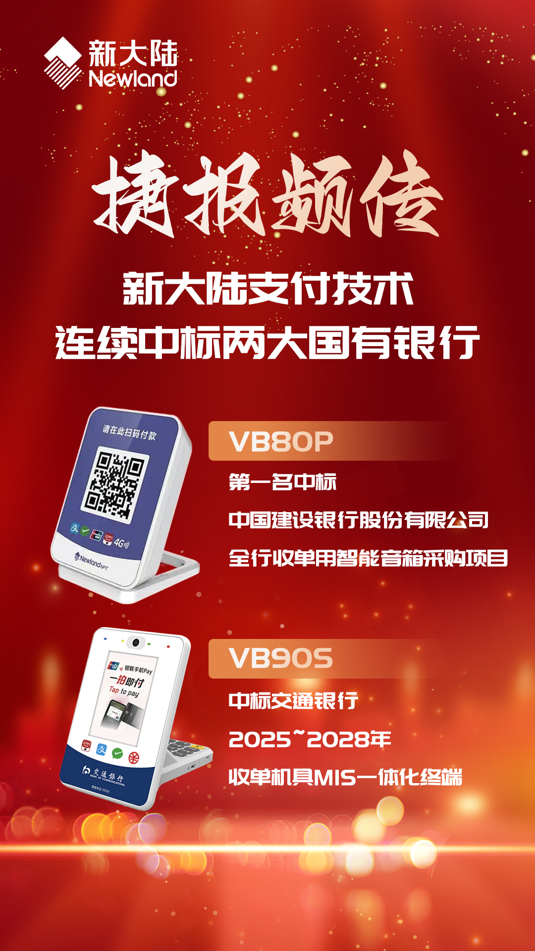 近日,新大陸支付技術(shù)迎來(lái)開(kāi)門紅,捷報(bào)頻傳,喜訊連連。新大陸支付技術(shù)憑借突出的產(chǎn)品實(shí)力和完善的服務(wù)能力,成功入圍中國(guó)建設(shè)銀行和交通銀行兩大國(guó)有銀行采購(gòu)項(xiàng)目。中標(biāo)產(chǎn)品支付云音箱VB80P和非接掃碼盒VB90S覆蓋餐飲、零售、酒店等各類商業(yè)場(chǎng)景,滿足不同體量商戶的支付需求。