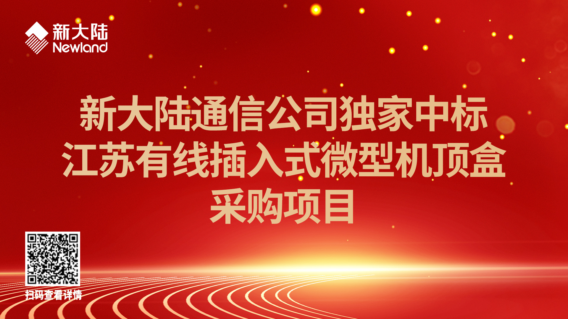 近日,江蘇省有線信息網絡股份有限公司(以下簡稱:江蘇有線)發布插入式微型機頂盒采購項目,福建新大陸通信科技股份有限公司(以下簡稱:新大陸通信公司)獨家中標。這是全國首次插入式微型機頂盒批量采購招標,標志著插入式微型機頂盒試點推廣和批量部署工作已經起步。